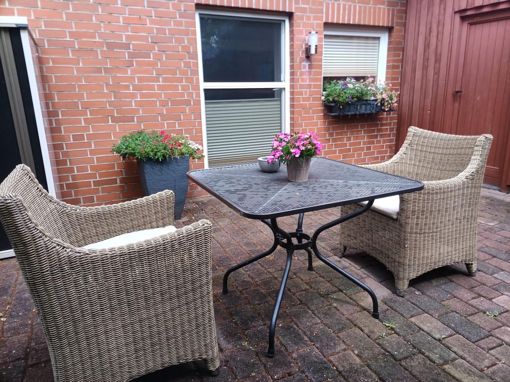 • Eigene Terrasse mit Tisch und zwei Sesseln